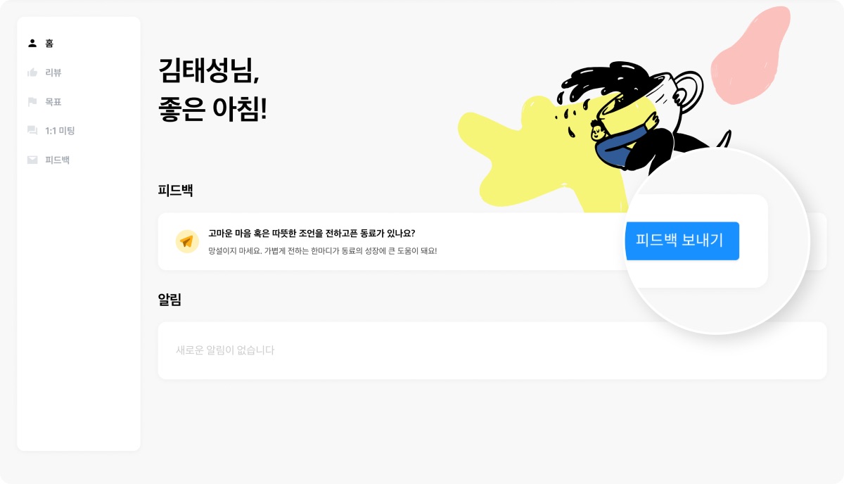 피드백이라고 하면 어떤 장면이 떠오르시나요? “이번 기획서, 좋긴 한데…”로 시작하는 회의실 속 한 마디, “이건 좀 아쉬워”라는 메신저 피드백, 혹은 1년에 한 번 돌아오는 인사 평가처럼 공식적인 순간들이 먼저 떠오를지도 모르겠습니다. 실제로 우리는 피드백을 ‘성과에 대한 평가’로 인식하곤 합니다. 리더나 동료가 구성원에게 주는 일방적인 평가를 통칭해 ‘피드백’이라 부르곤 하니까요. |