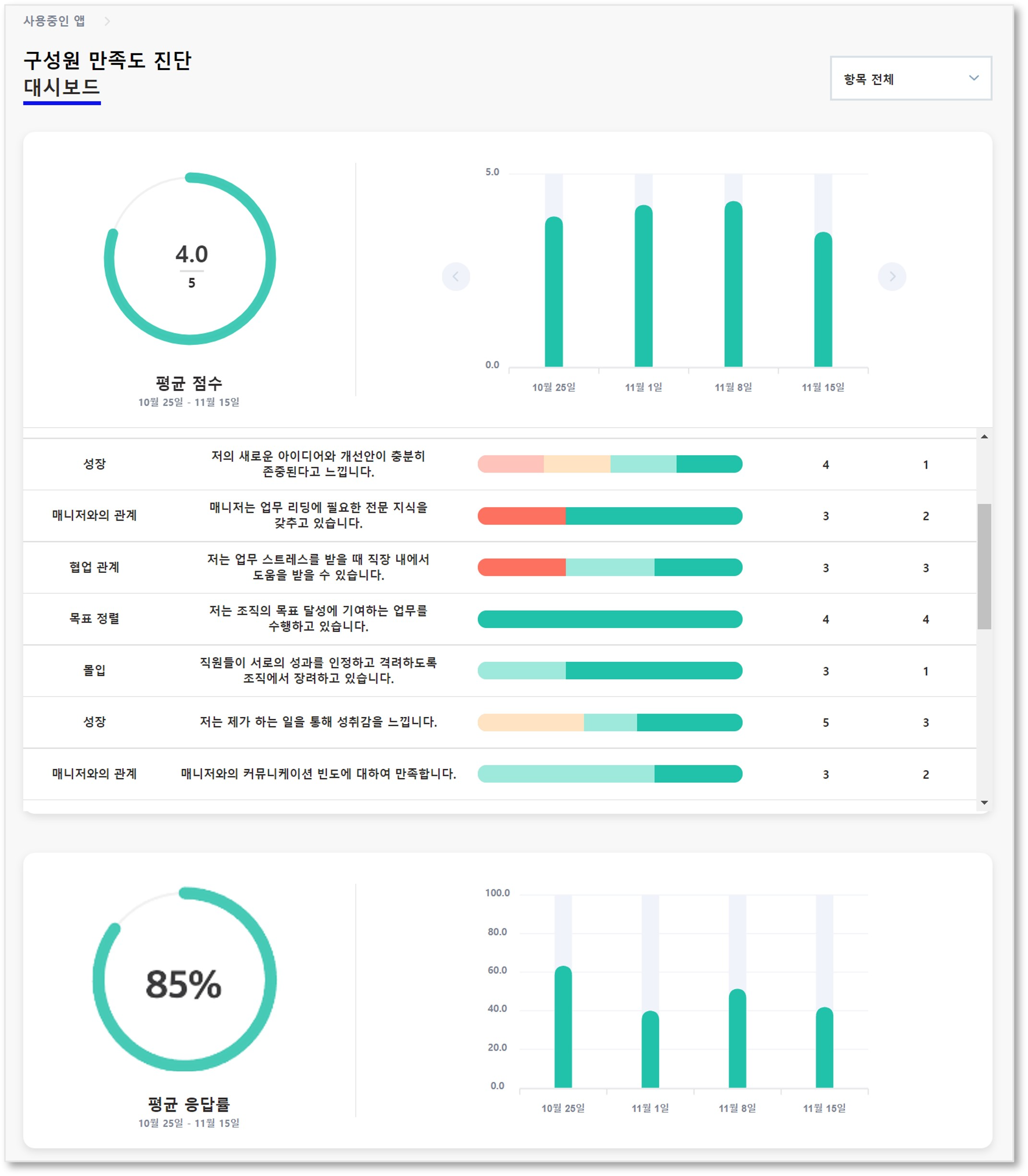 클랩은 조직 구성원끼리 나눈 면담과 텍스트 피드백 내용들을 기반으로 대시보드를 구축해 일방적인 피드백이 아닌 쌍방의 건설적인 피드백이 될 수 있도록 합니다. 이러한 시도들은 피드백을 단지 결과 중심의 평가에서 벗어나, 함께 일하는 방식을 바꾸는 대화로 전환하려는 실험입니다.