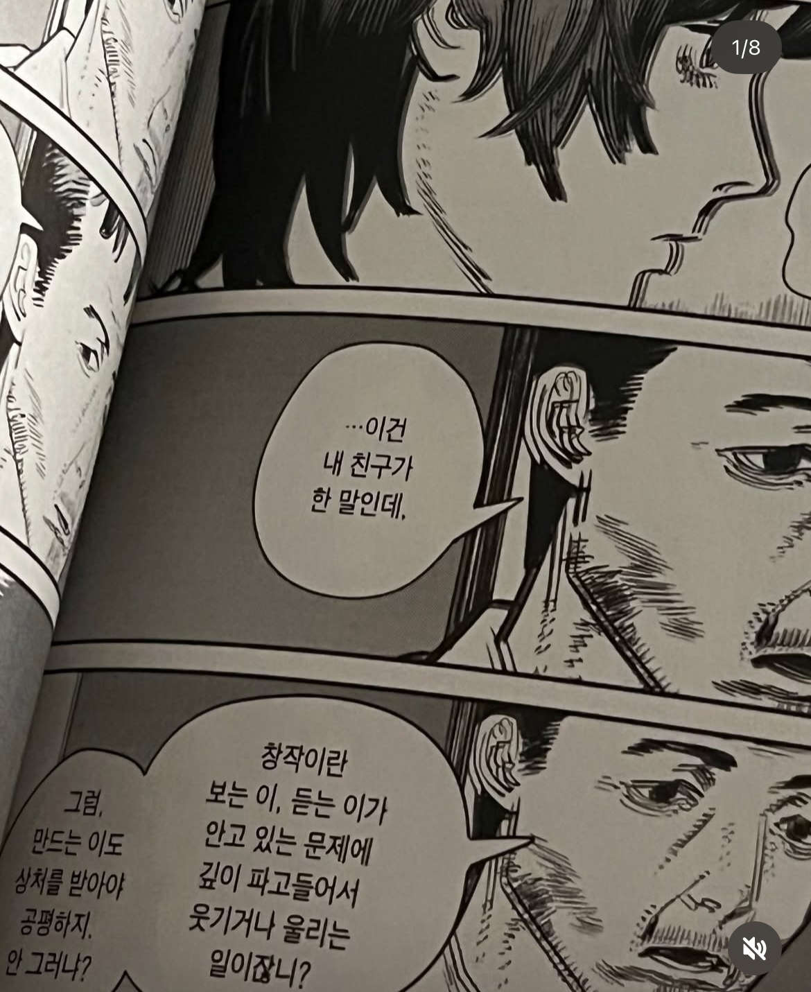 반면 만화를 더 선호하는 사람들은 보통 책이 주는 물리적인 감각을 선호하는데요, 저도 이런 편입니다. 핸드폰이나 태블릿으로 책을 읽으면서도 내용을 알 수 있지만 굳이 종이책을 빌리거나 사세 읽게 되는 것처럼요. 만화가들은 내용을 그저 나열하는 게 아니라, 각 칸마다 어떤 서사를 만들어낼지 고민해 가면서 페이지 구성을 하십니다. 따라서 어디에 자막을 배치할 것인가, 어디에서 액션을 어떻게 그릴 것인가 고민하며 그린 결과물을 더 살펴보고 싶은 사람이라면 만화책이 더 잘 맞겠습니다!
