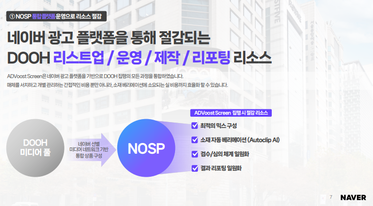 그래서 최근에 나온 네이버의 새로운 광고 상품이 정말 흥미로웠어요. 네이버는 올가을부터 옥외광고 시장에 진출하며, ‘애드부스트 스크린(ADVoost Screen)’ 이라는 AI 기반의 DOOH 솔루션을 새롭게 출시했는데요. 네이버 광고 시스템을 통해 광고 소재 등록, 심의부터 데이터 리포팅까지 한번에 처리할 수 있다고 해요. AI 기술을 기반으로 광고 소재를 디지털 캠페인처럼 최적화하고, 오디언스별 타겟팅도 제공이 가능하다고 하고요. |