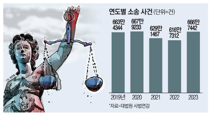 당사자 간의 합의로 풀리지 않는 갈등과 분쟁은 소송·고소·고발 같은 법적 절차로 이어지기도 합니다. 최근 몇 년간 주춤하는 듯했던 소송 건수는 코로나19 여파가 잦아들며 다시 늘어나는 추세입니다. 민·형사뿐 아니라 가사 사건까지 전반적으로 증가하는 흐름이 나타나고 있습니다. |