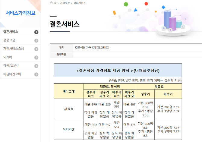 결혼 서비스 가격표시제 © 한국소비자원 참가격 홈페이지
